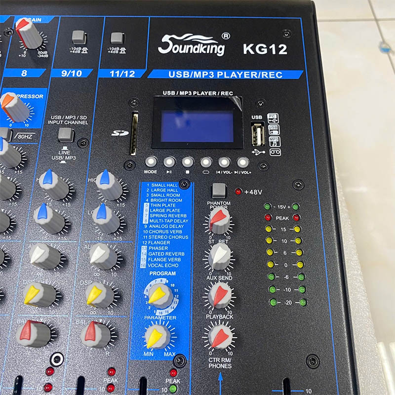 Series mixer Soundking KG được biết tới nhiều tại thị trường Việt Nam, phổ biến nhât là model KG08 gồm 8 ngõ vào. Trong năm mới này, thương hiệu Soundking cho ra mắt tại thị trường Việt Nam model KG12 gồm 12 ngõ vào, ứng dụng cho các nhu cầu sử dụng mixer nhiều line, có thể chơi nhạc cùng loa cột column, trình diễn quy mô vừa và nhỏ, hay các nhu cầu lắp đặt cố định: Hội trường, nhà thờ, nhà nguyện nhỏ, nhà chùa... rất hiệu quả.